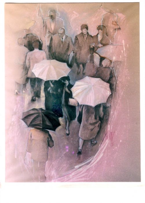 Cuadro: Paeantes por la lluvia