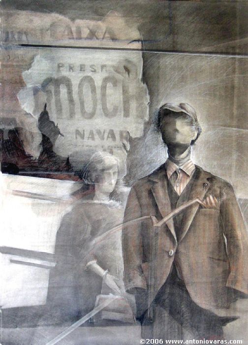Muñecos. carbón - papel. 100 x 71 cm.